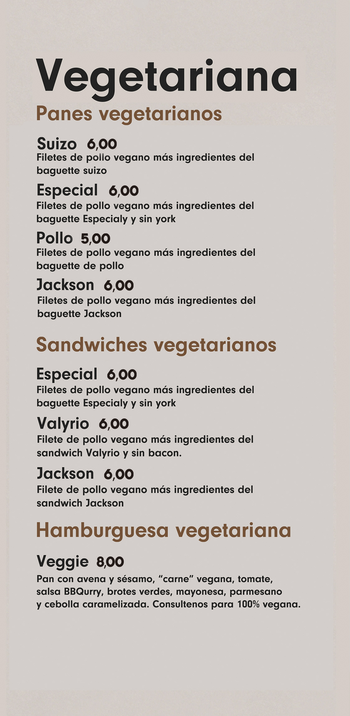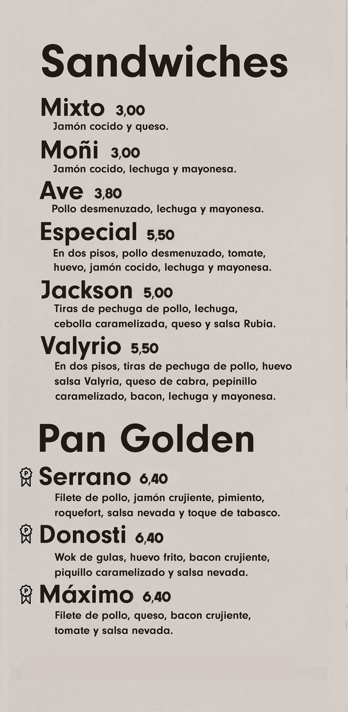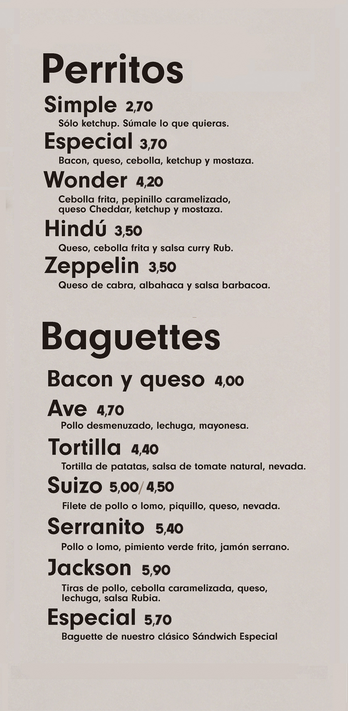 Nuestra carta de hamburguesas, entrantes, sandwiches, etc incluyendo precios e información de alérgenos.